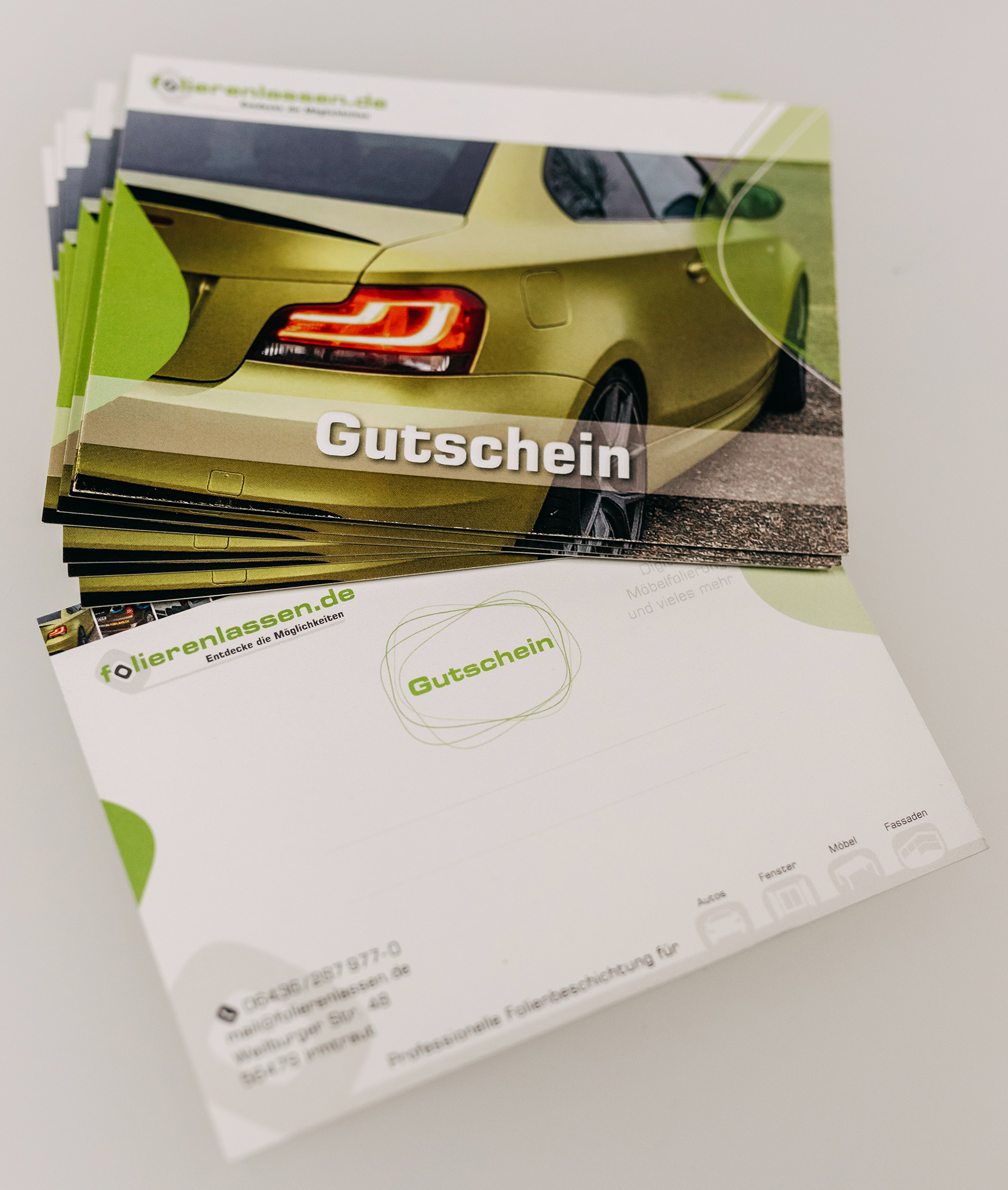 Weitere Informationen erhalten Sie bei uns vor Ort, telefonisch oder per Mail an mail@folierenlassen.de